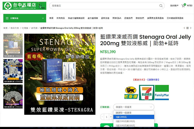 產品名稱 雙效果凍威而鋼、藍莓威而鋼、液態威而鋼、藍鑽果凍威而鋼