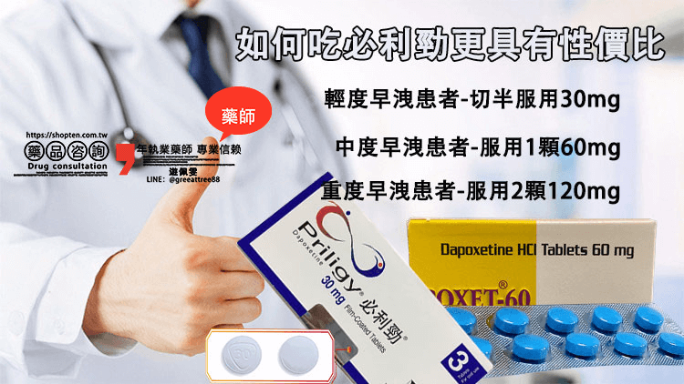 亮點患者在使用必利勁時,心裡常會有一個疑問:「怎麼吃才能更省錢?」畢竟原廠必利勁價格不低,每顆約新台幣400元左右,若屬於中重度早洩患者,單次可能需要服用兩顆(60mg),一次花費需近新台幣800元,長期下來相當可觀。