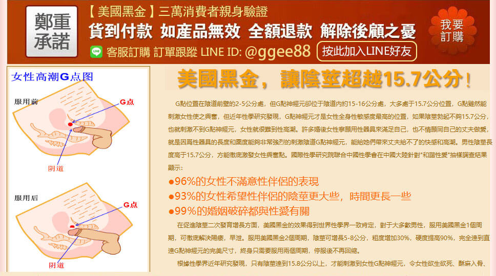 不少男生平常可能喜歡自己來,長久下來實際上場時,就容易中途疲軟,有過一次失敗的前例,讓我再接下來每一次房事過程中,總會想到上一次不愉快的經驗,久了就對心理產生壓力,自從使用了美國黑金之後,明顯感覺到自己的變得持久,那種感覺簡直是棒極了,還找回了自己的自信,可以說使用美國黑金之後發現,原來我也可以很行。