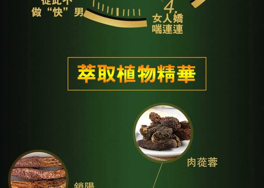 【主要成分】瑪咖、銀羊藿、肉蓯蓉、羊起石、丁香、苯紮臭銨0.1%等。